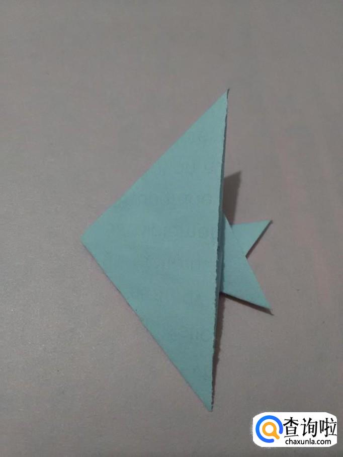 用笔在左边的角处画一条弧线,分出头部,在头部上面画一只眼睛,再用笔从右侧的四个角处画几条短线,表示鱼鳍,小燕鱼就折好了。