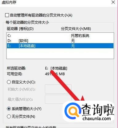 接着选择一个剩余空间较大的硬盘分区,将虚拟内存设置为系统管理的大小后,点击设置按钮,重新运行绝地求生游戏即可。