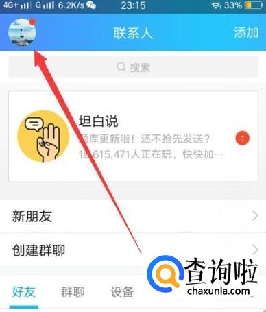 进入之后,点击自己的头像进入下一页面,如图所示。