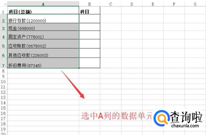 接下来我们选中A列的数据,注意不要选择标题单元格,如下图所示