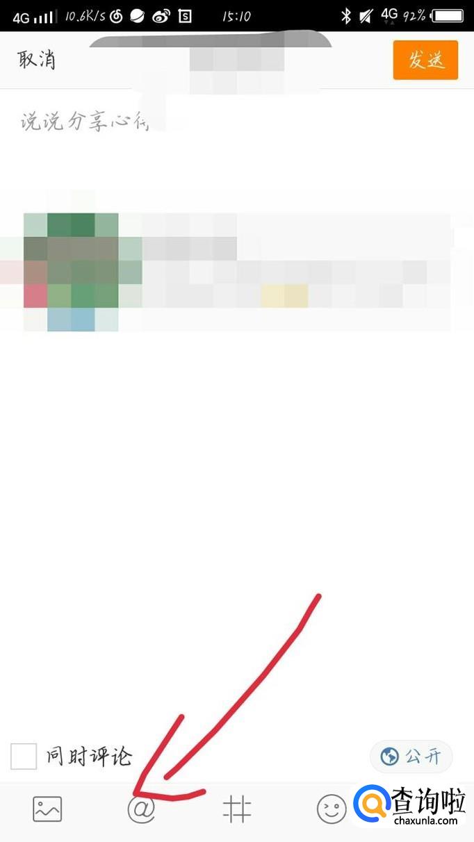 点击“@”图标,如图1箭头所示。会出现一个新的界面,如图2所示。选择好你想要@的联系人就可以了。