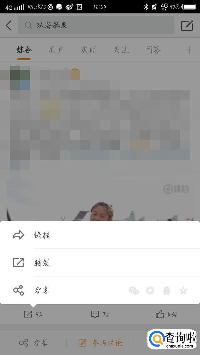 点击“转发”这个选项,如图1箭头所示。你会看到出现一个新的界面,如图2所示。