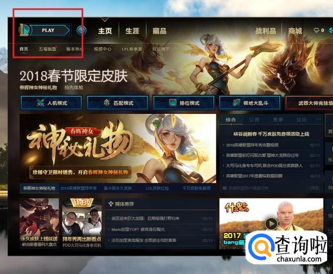 首先,我们打开LOL游戏的客户端主页面,在主页面中点击“PLAY”按钮,开始进入游戏模式选择。