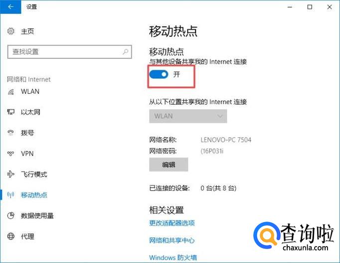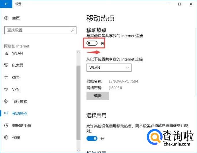 然后我们将移动热点的开关向右滑动打开就可以了,还是比较简单的。
