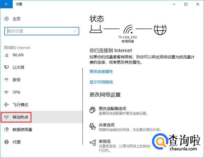 弹出的界面,我们点击移动热点;