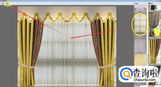 窗纱。最后选择窗纱,单击窗纱小图,其自动铺入窗户上,如果觉得设计的窗帘满意,即可点击保存;