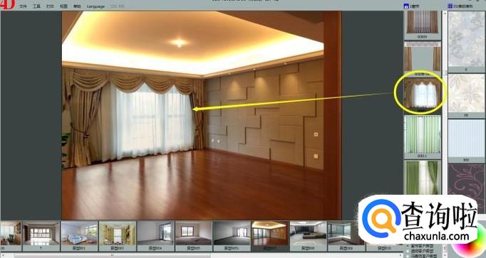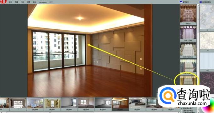 找到设计好的窗帘,直接展示于房间图上,看效果;