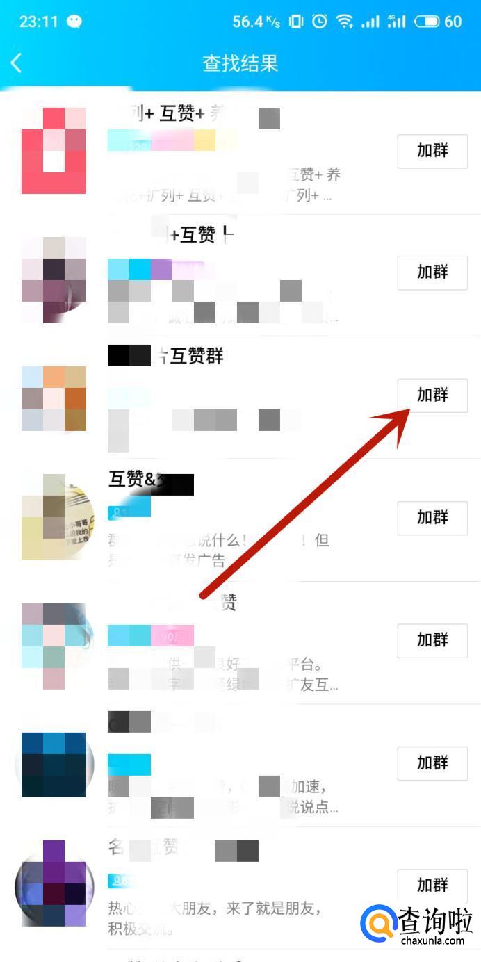 在搜索结果页面,加入想要加入的互赞群,进入之后可以与群里的群成员进行互赞。