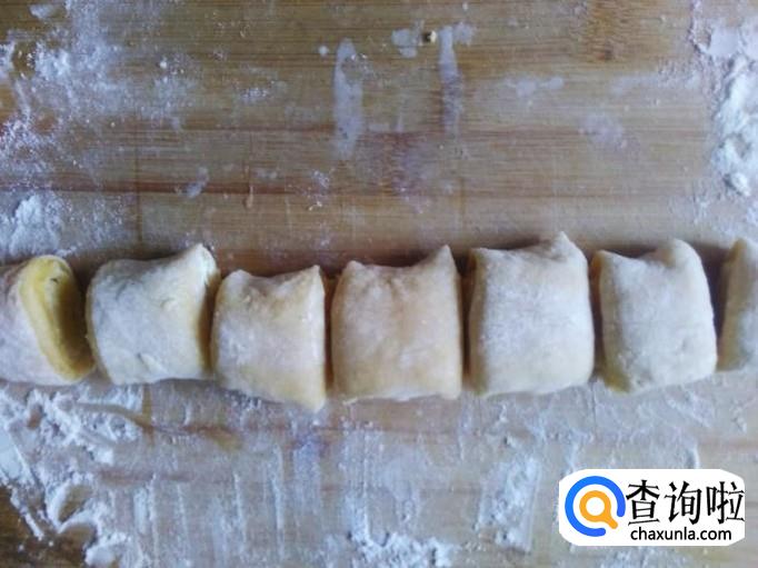 用刀切成一段段,放到烤盘。