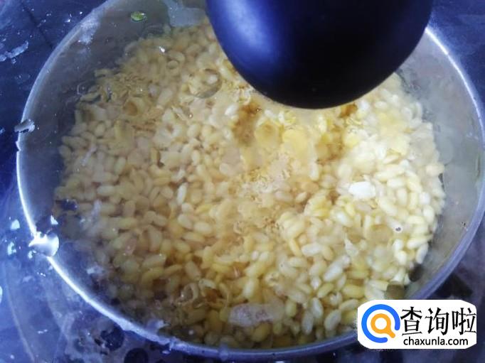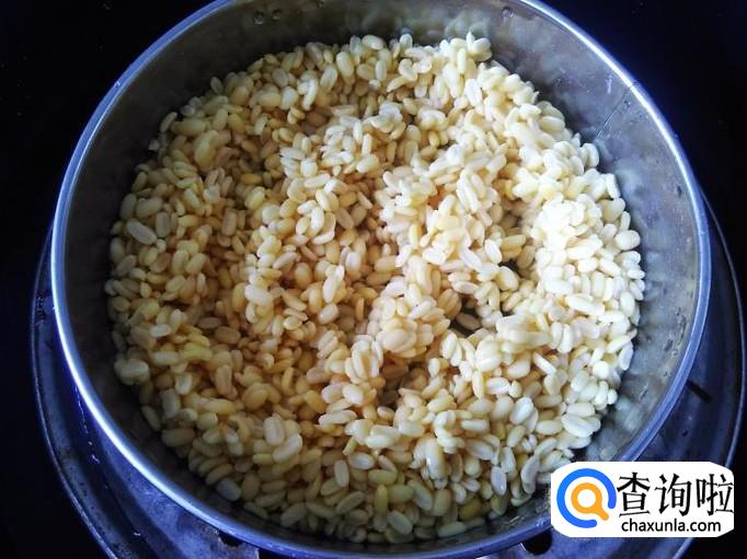 把泡了一个晚上的绿豆捞起来,放到锅里用大火蒸15分钟左右。