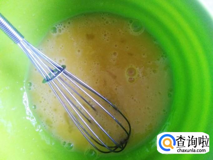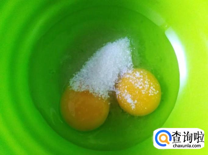 把2个鸡蛋打到盘子里,然后加适量的白糖,搅拌均匀。