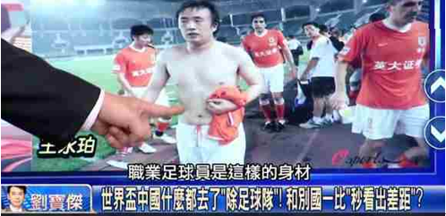 中国台湾省媒体的电视节目中,主持人评论道,中国球员的身材像白斩鸡,拿高薪享受生活却不拼命。
