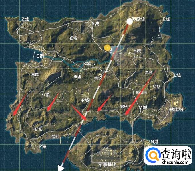 还有一点就是,一些常规的打野点物资丰富,大家一定要记住,大家可以参考一下我给的图片,这几个点你可以尝试开始的时候跳
