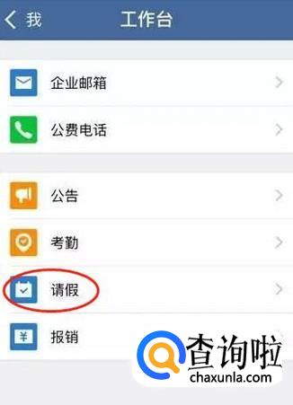 打开企业微信,点击下方的“我”,选择“工作台”,在“工作台”菜单下点击“请假”就可以。