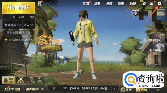 首先打开刺激战场,点击右上角的设置。