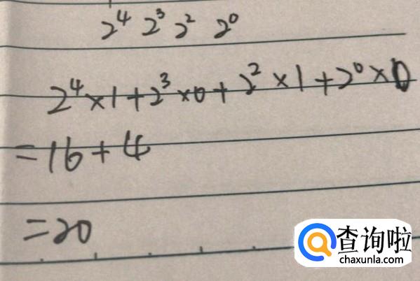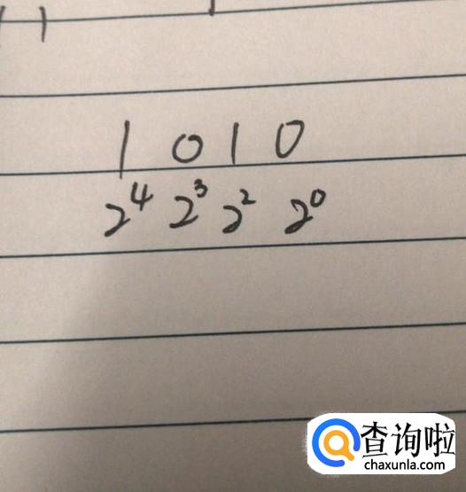 将二进制转化成十进制,直接考虑每位数所对应的数值,第一位是2的一次方,第二位为二次方,以此类推,得到如图所示的关系。