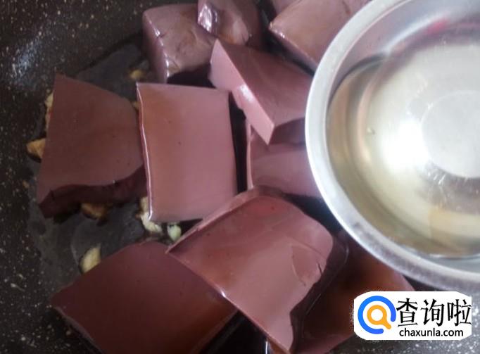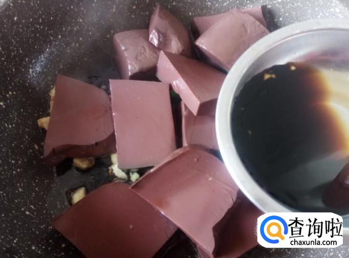 再开火下油,放姜丝、青蒜进去然后牛血下锅,1勺生抽。【不用放盐,牛血本身已经用盐调好味】