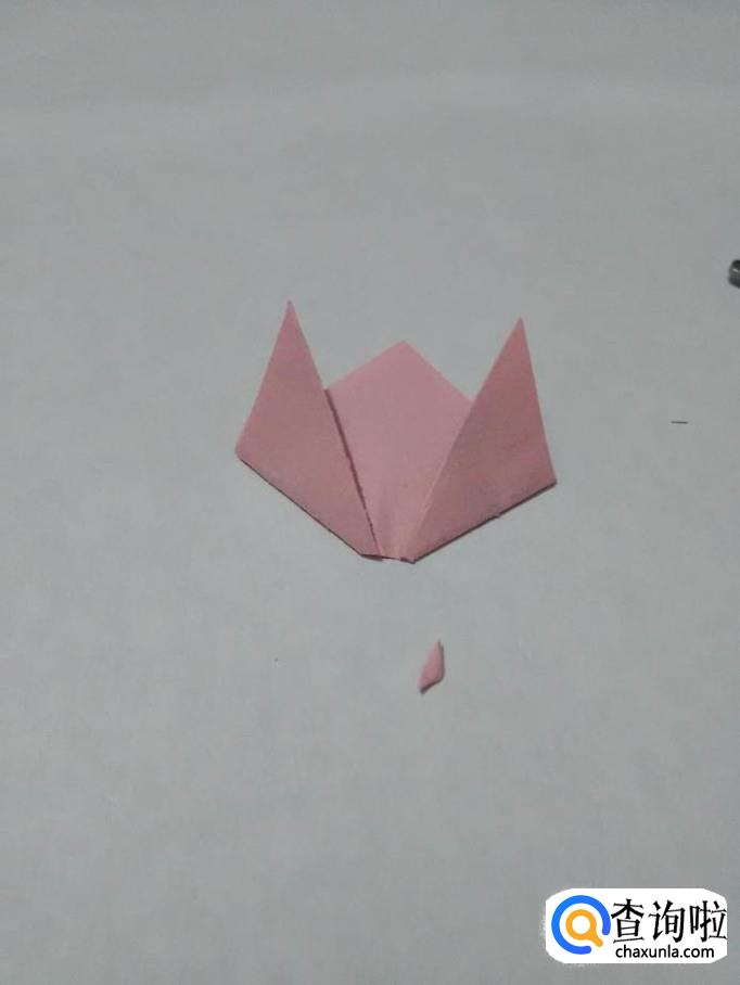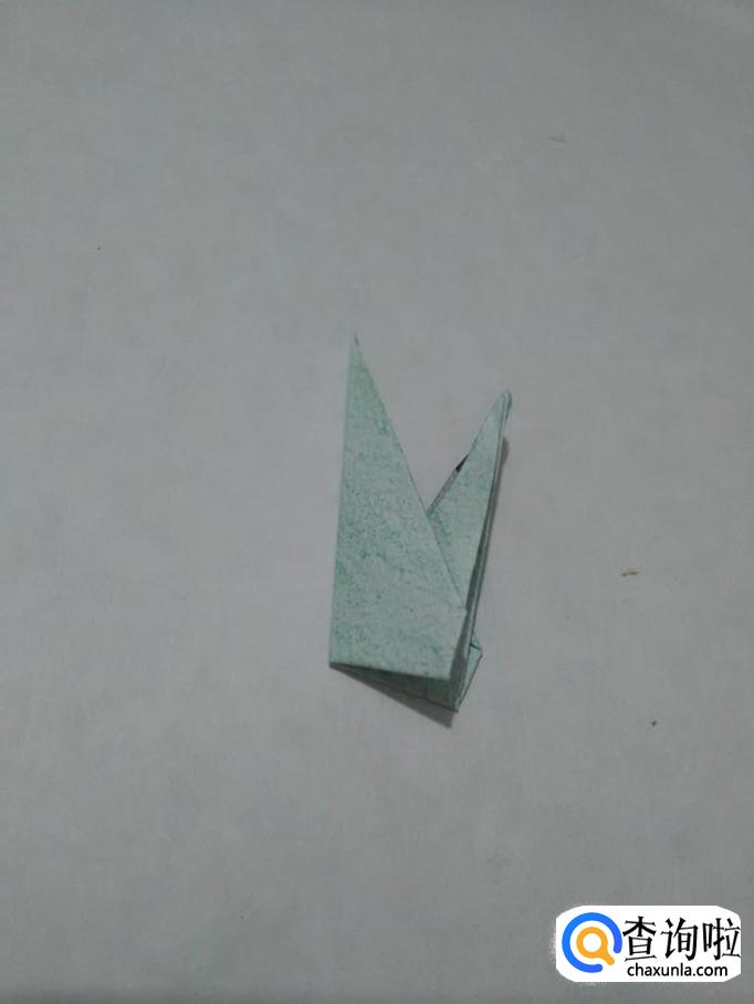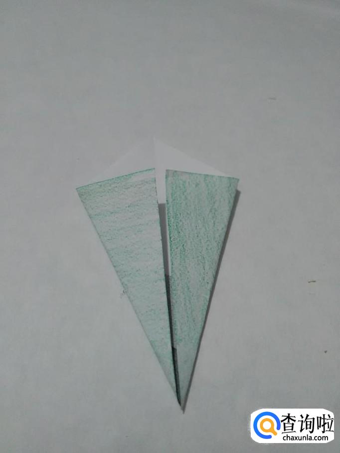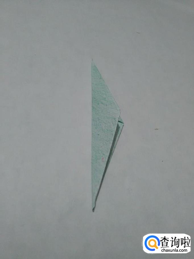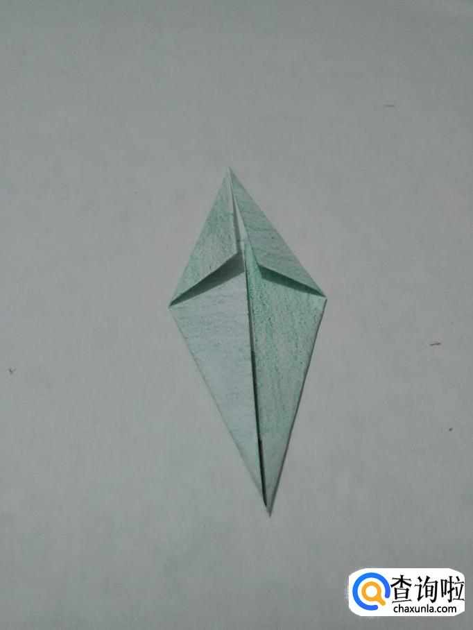 将三角形下面的角从里面向上折,然后把下端按平,花儿的叶子就折好了。