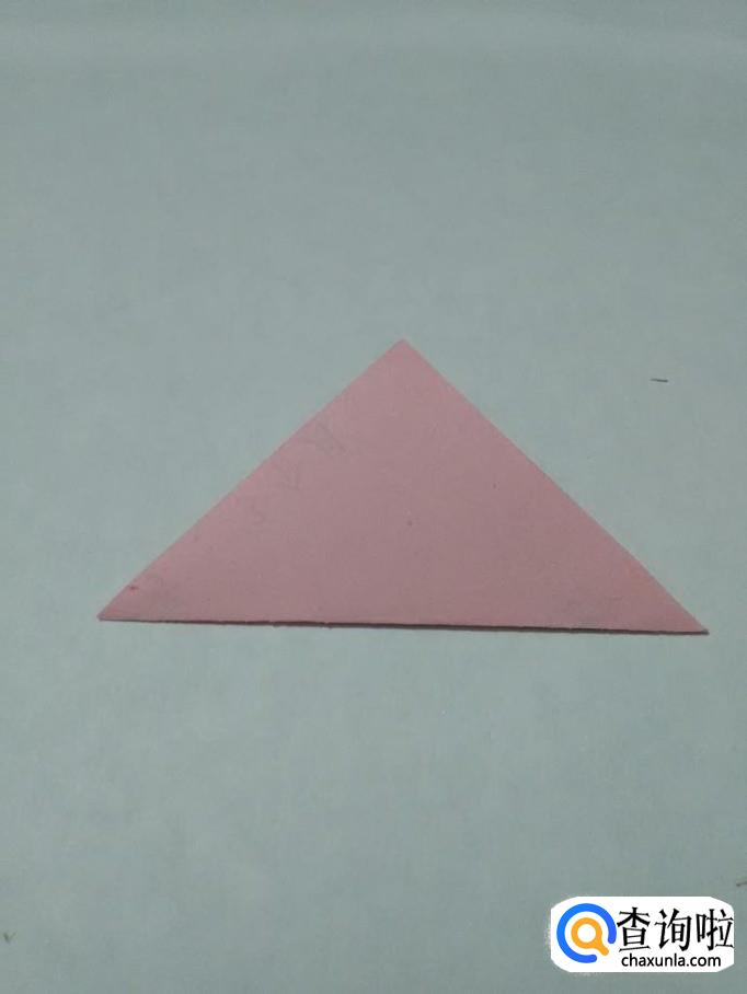 先把粉色的正方形的一个角向对面折,折成三角形。
