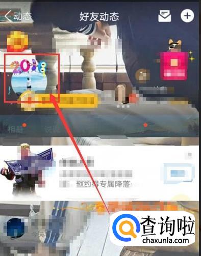 打开QQ空间,进入好友动态页面,点击自己的头像位置,如图所示。