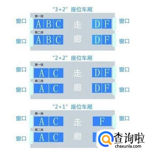 动车组列车的坐席位置通常用A、B、C、D、F五个字母表示:
