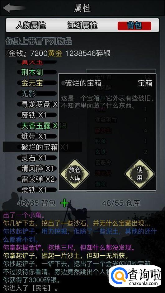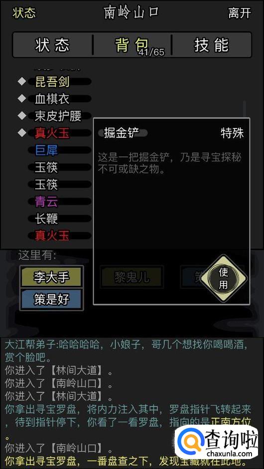 然后根据提示,最后找到藏宝地点,就拿出掘金铲,点击使用。
