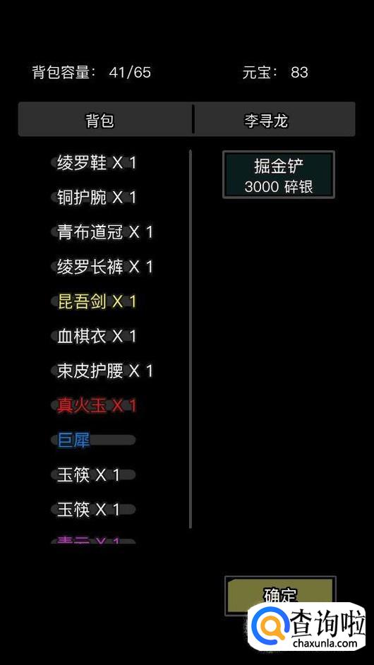 然后我们就进入15章,先和李寻龙做交易,购买掘金铲,3000碎银一个,一天最多可以买3个,剩下的就需要用元宝买了,没必要。