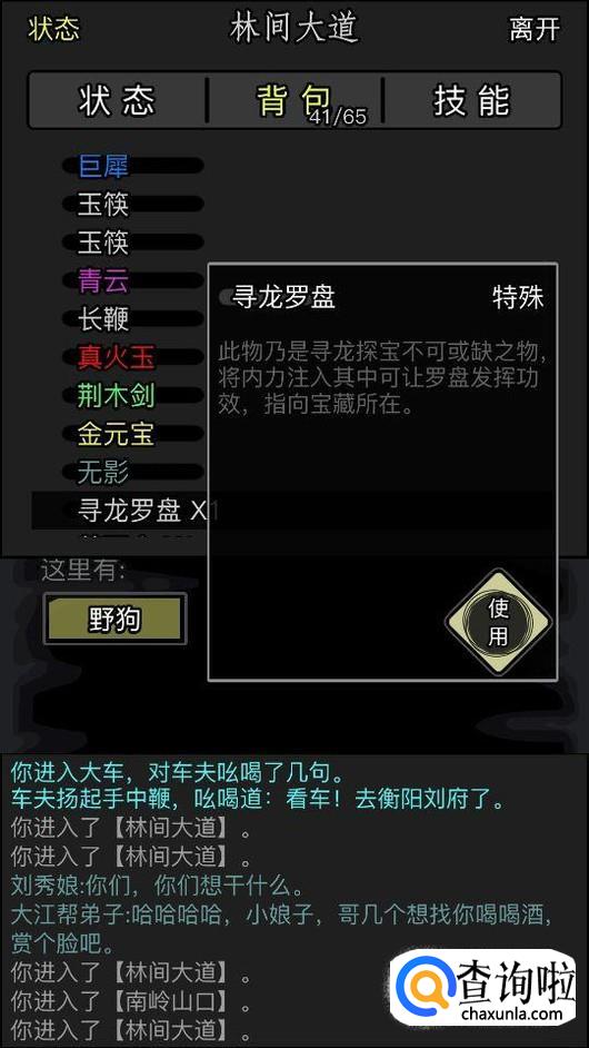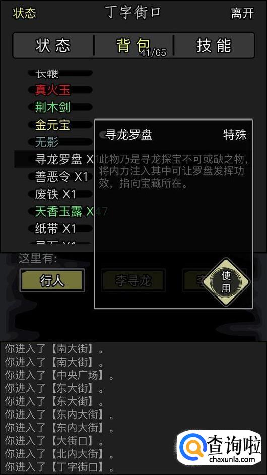 然后就到背包里面找到罗盘,点击使用。