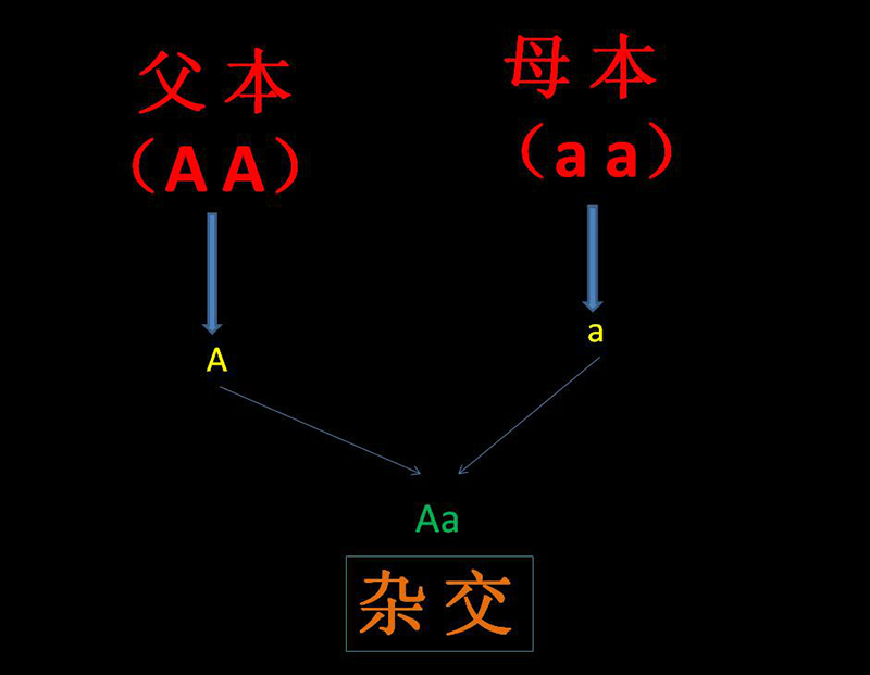 杂交是通过不同基因型的个体之间的交配而取得某些双亲基因重新组合的个体的方法,通过生殖细胞相互融合而达到这一目的过程称为杂交。