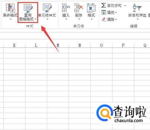 打开excel之后,我们在菜单那里找到套用表格格式选项,如图所示: