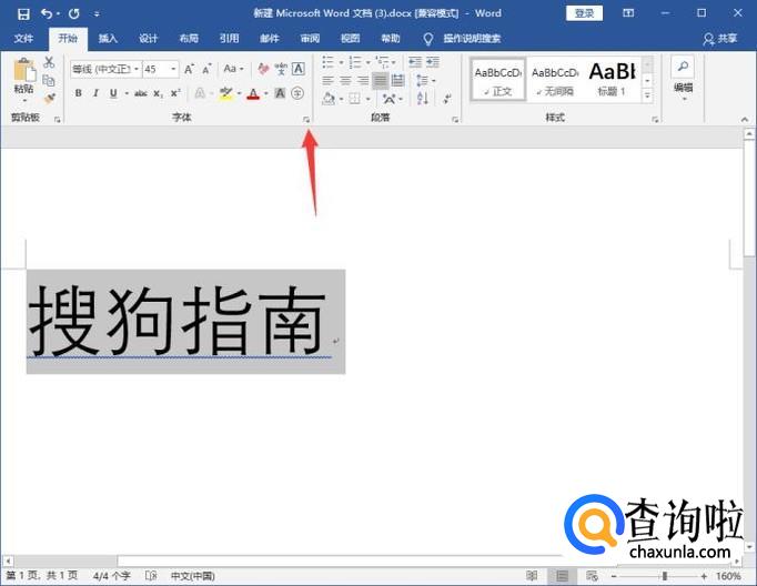 首先选中文本,再点击字体选项卡右下角的箭头,如下图所示