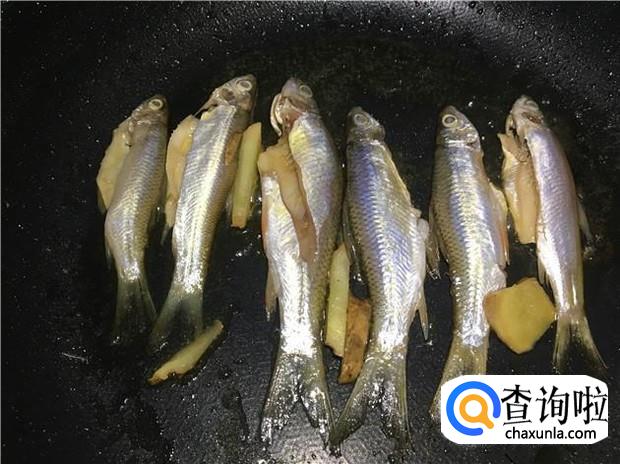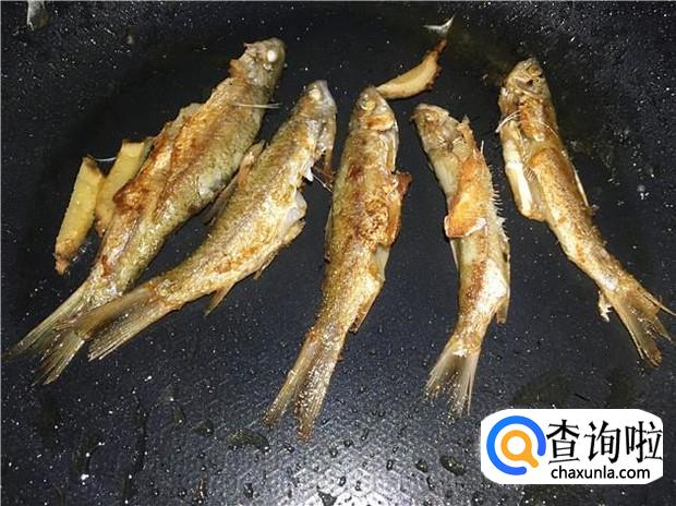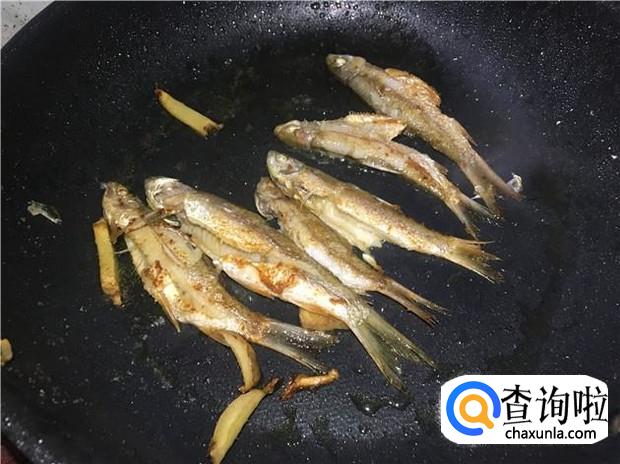 放入小河鱼后,先不要着急着翻动,要等底下的一面煎到金黄色,再翻到另一面煎,用小火慢慢煎,把小河鱼身上的水分给烘干,鱼肉变得结实了,就可以出锅了。