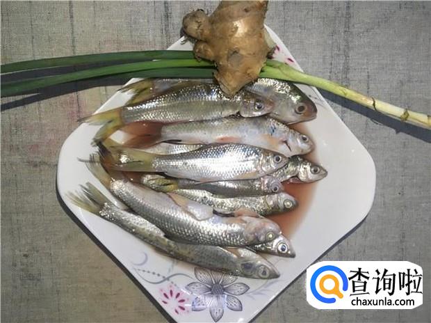 准备好一斤新鲜的小河鱼,老姜一颗,香葱一根。