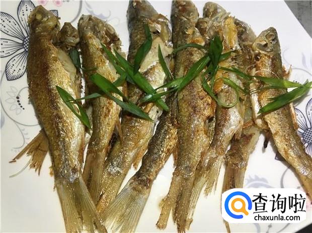 煎好的小河鱼平整地摆放在盆子里,撒上葱丝,即可出锅啦。