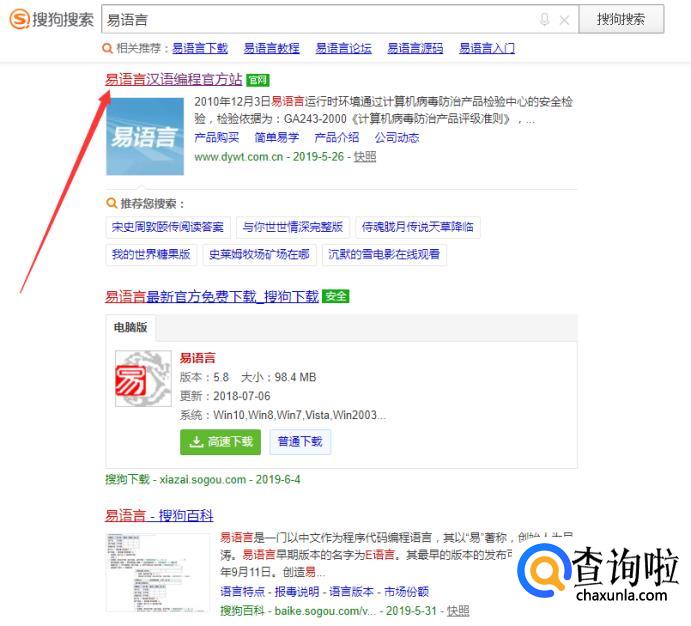 首先,搜索易语言。