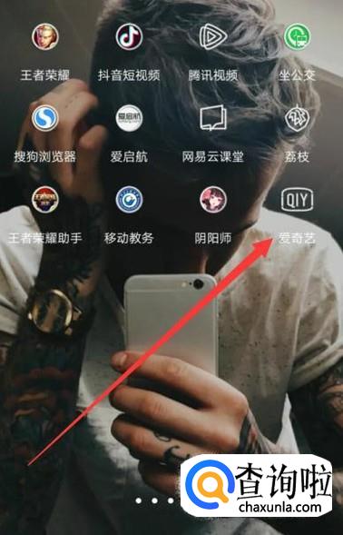 打开手机,找到爱奇艺,点击并进入,如图所示。