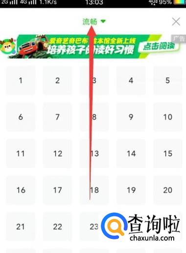进入之后,点击图示位置的“流畅”,如图所示。