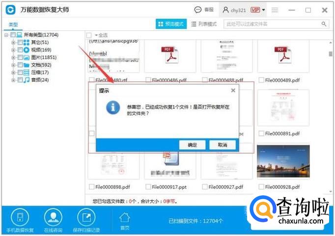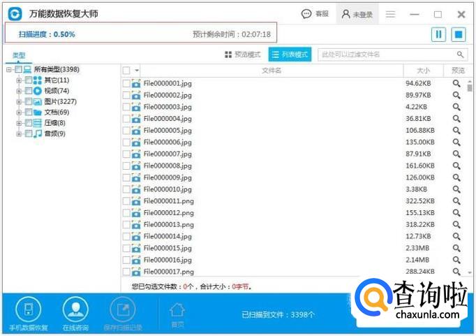 扫描磁盘上的数据,在扫描的时候建议切换到预览模式,可以直观的看到自己要扫描的数据,预览数据的内容。并且可以随时点击暂停扫描,对数据恢复。