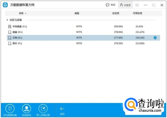 选择要扫描的磁盘,自己误删的文件原先存储的位置。