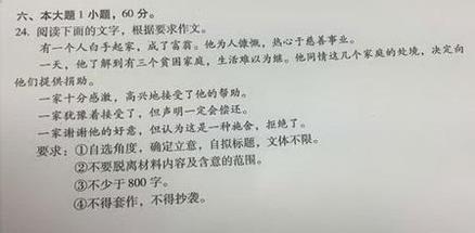 较长的作文题目一般就有具体的较为详细的事例了,这样的材料可以从局部和整体两个角度来看。