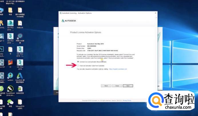 进入提示信息界面,选择第二个选项,表示已经有激活码,然后点击“next”进入下一步。