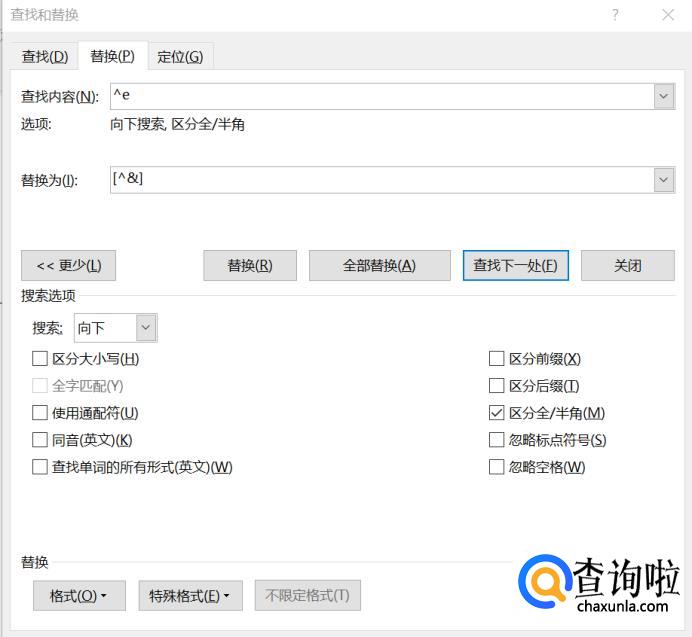 同时按下查找快捷键(Ctrl+H)后在界面中点击”高级”—"特殊格式”—"尾注标记”(会自动显示^e)—替换为[^&]。点击替换后。