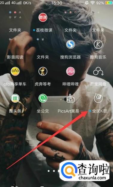 打开手机,找到全民K歌,点击并进入,如图所示。