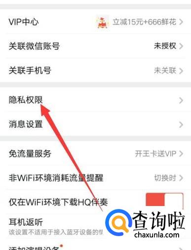 进入之后,点击“隐私权限”,进入下一页面,如图所示。