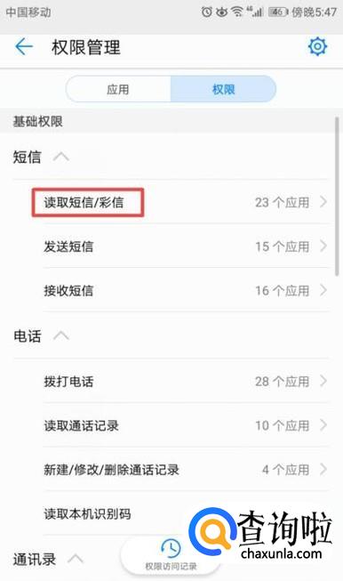 这里面就是应用的权限修改的地方了,我们可以点击读取短信/彩信;