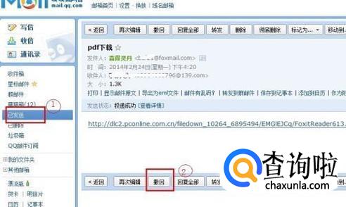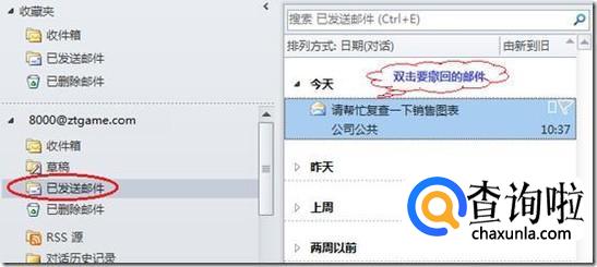 打开您想撤回的邮件,在“邮件”选项卡下选择“操作”再“撤回该邮件”。