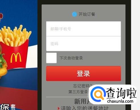 点击登录。接着在页面的右侧,可以登录网站,如果有账户直接登录,没有的话就直接用微信或者注册一下,只有登录的时候才能点餐。