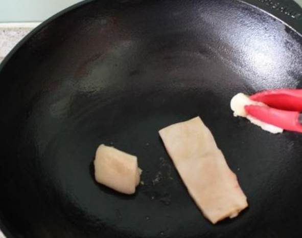 5、把锅里的油倒掉,留一块肥肉,把锅外面也反复擦一遍。
