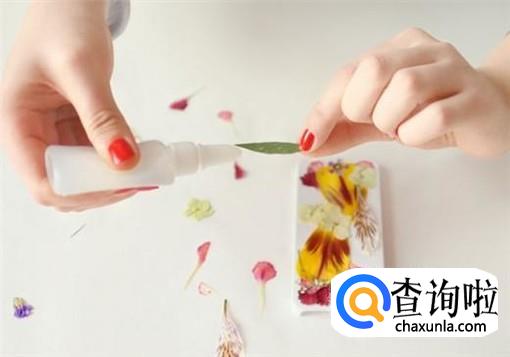然后我们还要准备好胶水和纸,将烘干的鲜花背面涂抹上少量的胶水,粘贴到纸张上。