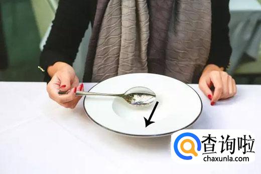 喝完汤,记得要把汤匙放在靠自己身前的底盘上,或是放在盘中。一般汤匙柄是朝右方的,汤杯与汤盘也都是如此摆放。